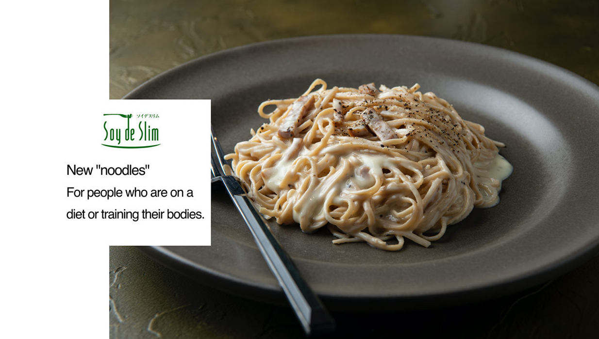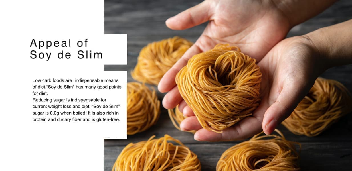 “Soy de Slim” made from Soy and konjac.You can make a wider variety of foods.Example,Pasta,Ramen,Udon,Soba.